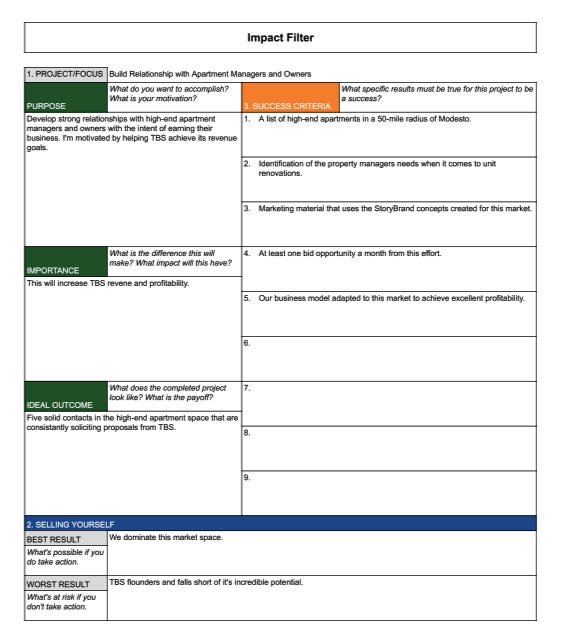 Here is an example of the impact filter for a Q2 rock for my new company, Trinity Builder Solutions: